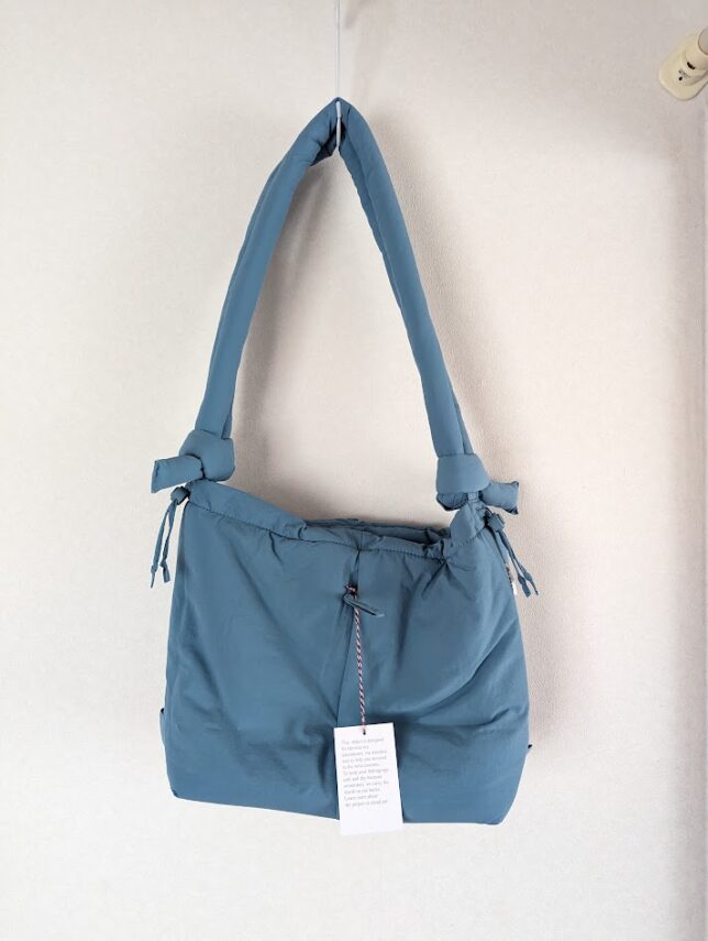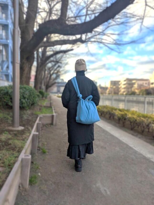 そんな、高すぎないけど、ちょっとおもしろい素敵なお土産がたくさん届くのでいつも年末の帰国時はとても楽しみです。 昨年のお土産はÖLEND(オレンド)のバッグ。数か月前からお知らせがあり、娘と二人で色選び。ブラックフライデーが一番安いからとその時期に30%OFFでゲット。私はLigthBlue、娘はPinkにしました。シンプルな色の洋服が多いので、バッグで差し色。