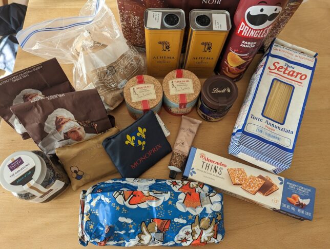 20年ほど前にスペインでも大流行していたCAMPERのスニーカーにはじまり、2年前には私的に大ヒットのまつ毛美容液(uklush)、昨年はフランス旅行前にBIODERMAの洗顔ジェルを教えてもらいとても気に入っています。定番土産はリンツのチョコレート。日本には売っていない特大のチョコレートボックスが毎年届きます。パエリアの素も外せません。サッカー好きの夫と息子にはリーガエスパニョーラ(スペインリーグ)のチームユニフォームも。姉夫婦が好きだったバレンシアのチームユニフォームは歴代サイズ違いで残してあります。姉は食べることが好きなので食材もいろいろ。イタリアのパスタ、スペインのオリーブオイル、ファッション系だとZARAが日本よりも安いので日本の店舗でチェックして買ってきてもらうことも。(子どもたちが小さいころは、ZARAやスペインブランドの子ども服、パジャマなどがいろいろ届いていました。)逆にユニクロは日本のほうが安いので姉夫婦は日本帰国時に買って帰ります。