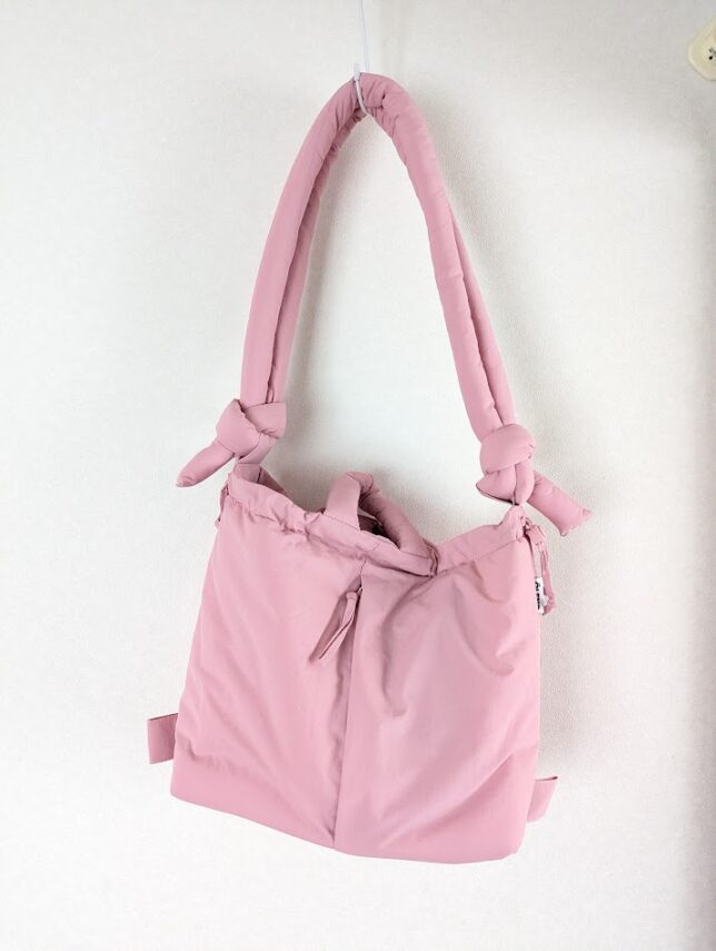 何がいいって、とにかく軽い。ふわふわした触り心地が抜群です。肩への負担もありません。その上、収納力も優秀。さらに、ショルダー部分を付け替えるとリュックサックにもなるという2WAY仕様。